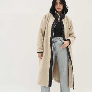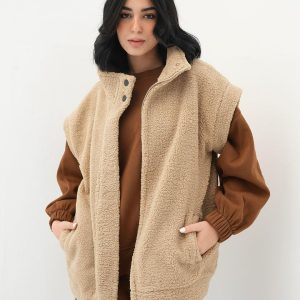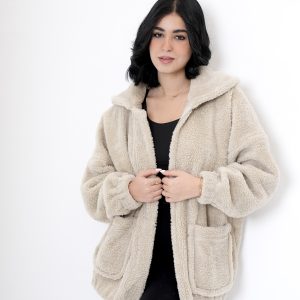 beige fur jacket with soft and comfortable design. It has front snap closure and practical side pockets, perfect for cold weather and a stylish everyday look one sizeEGP 950.00 -