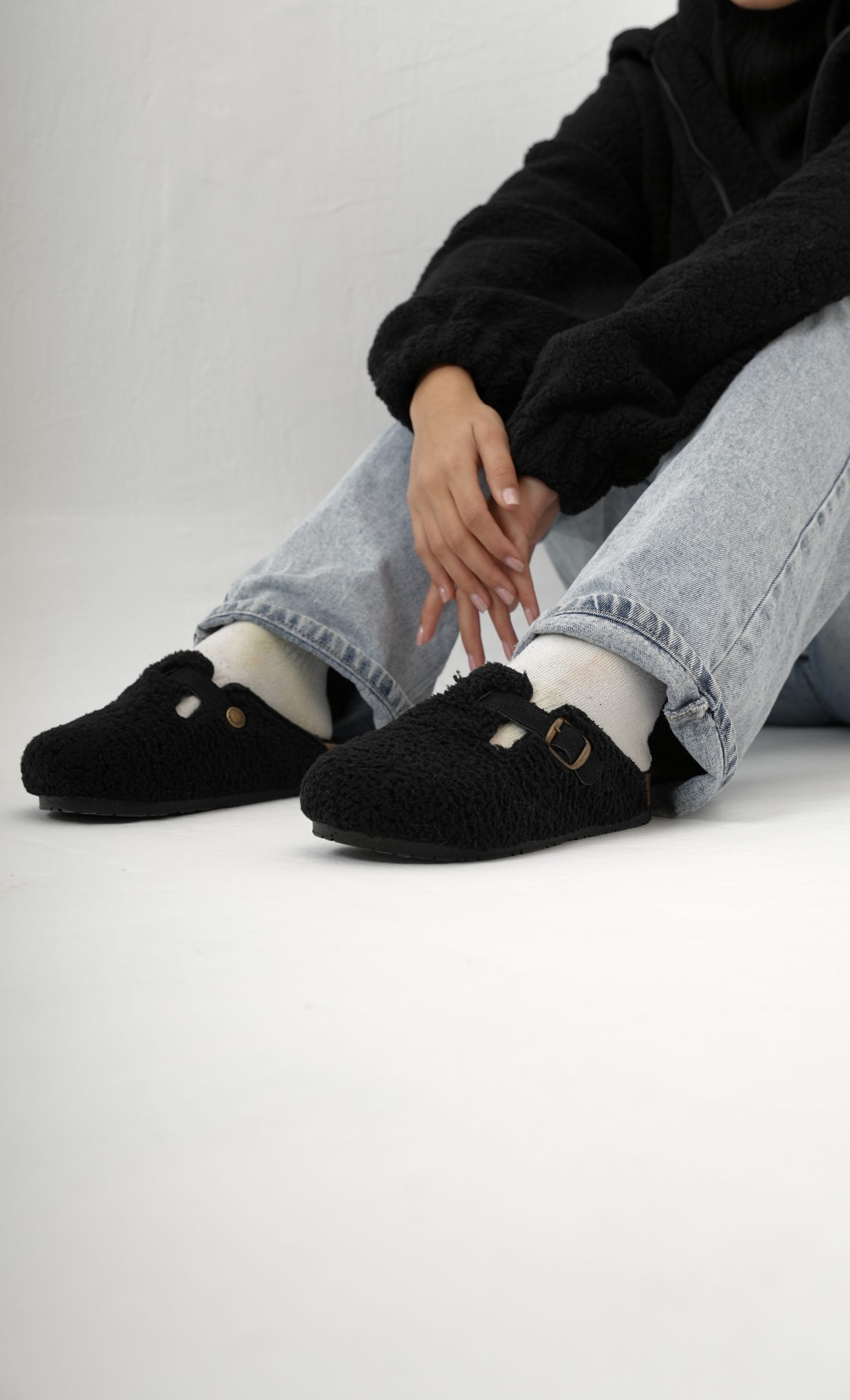 Black clogs fur in