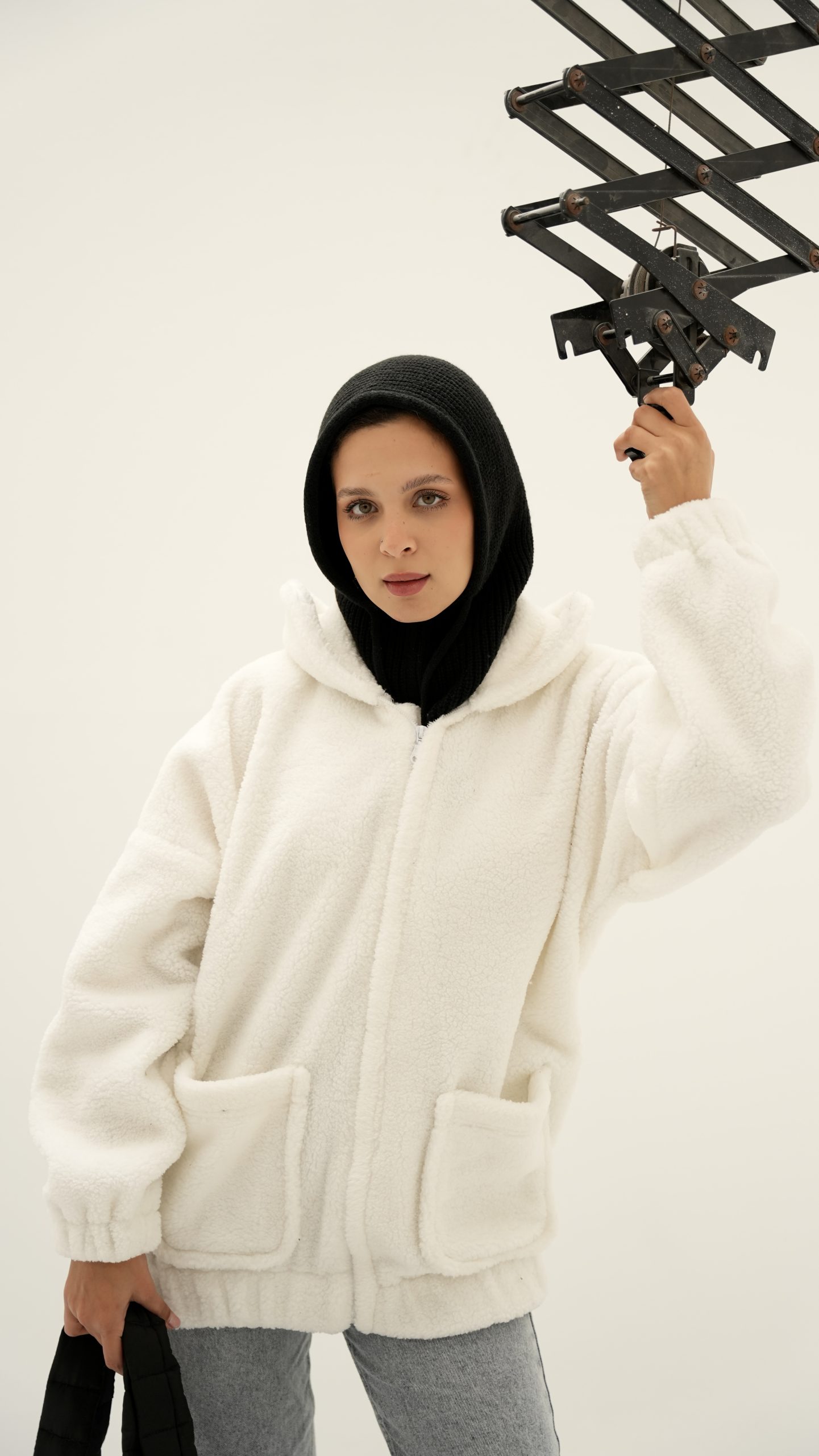 white fur jacket with soft and comfortable design. It has a front zipper closure and practical side pockets, perfect for cold weather and a stylish everyday look. one size Its length is 75 Its width is 60EGP 950.00