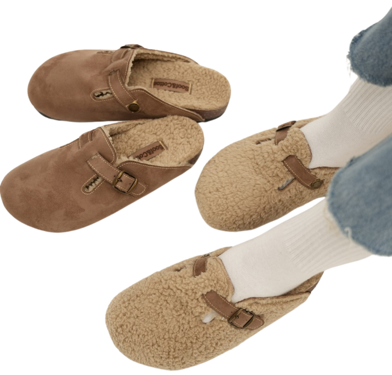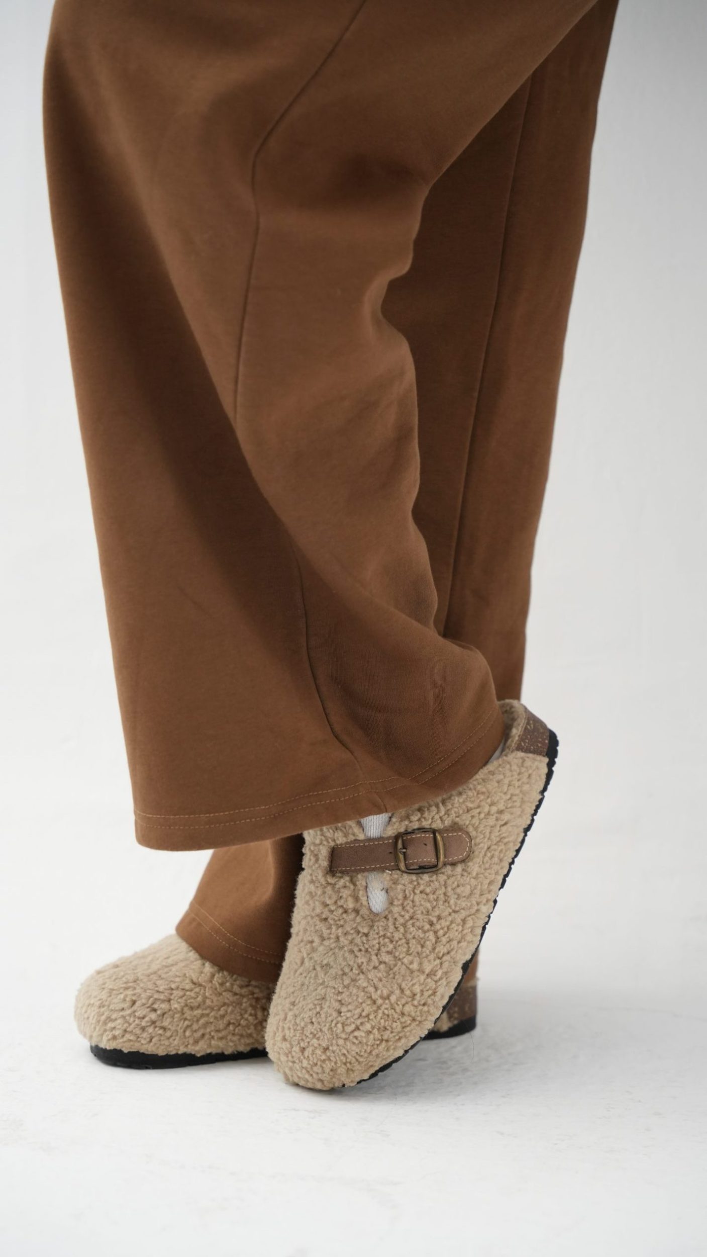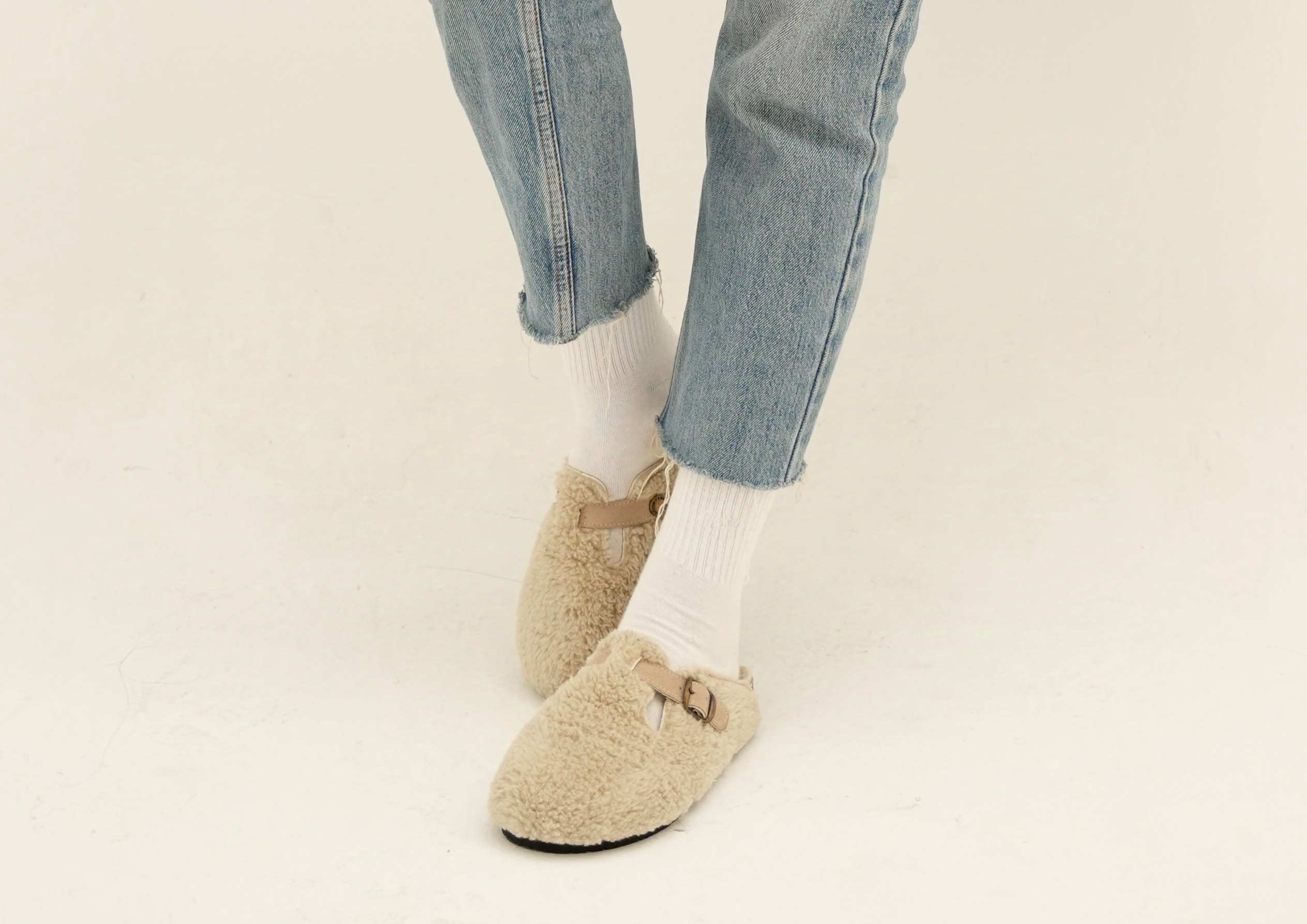 Beige clogs fur out
