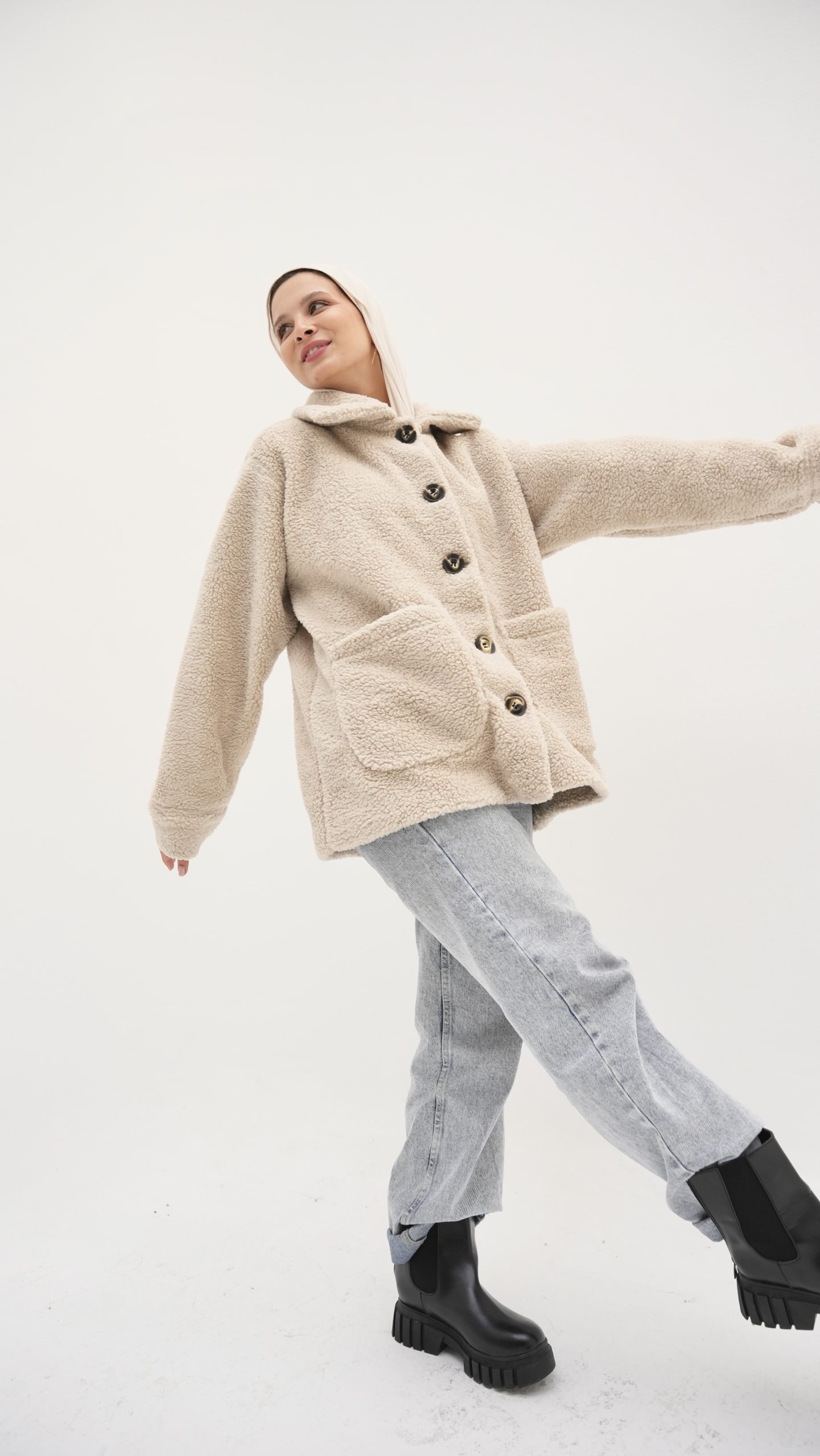 Green fur jacket with soft and comfortable design. It has front snap closure and practical side pockets, perfect for cold weather and a stylish everyday look one sizeEGP 950.00 -