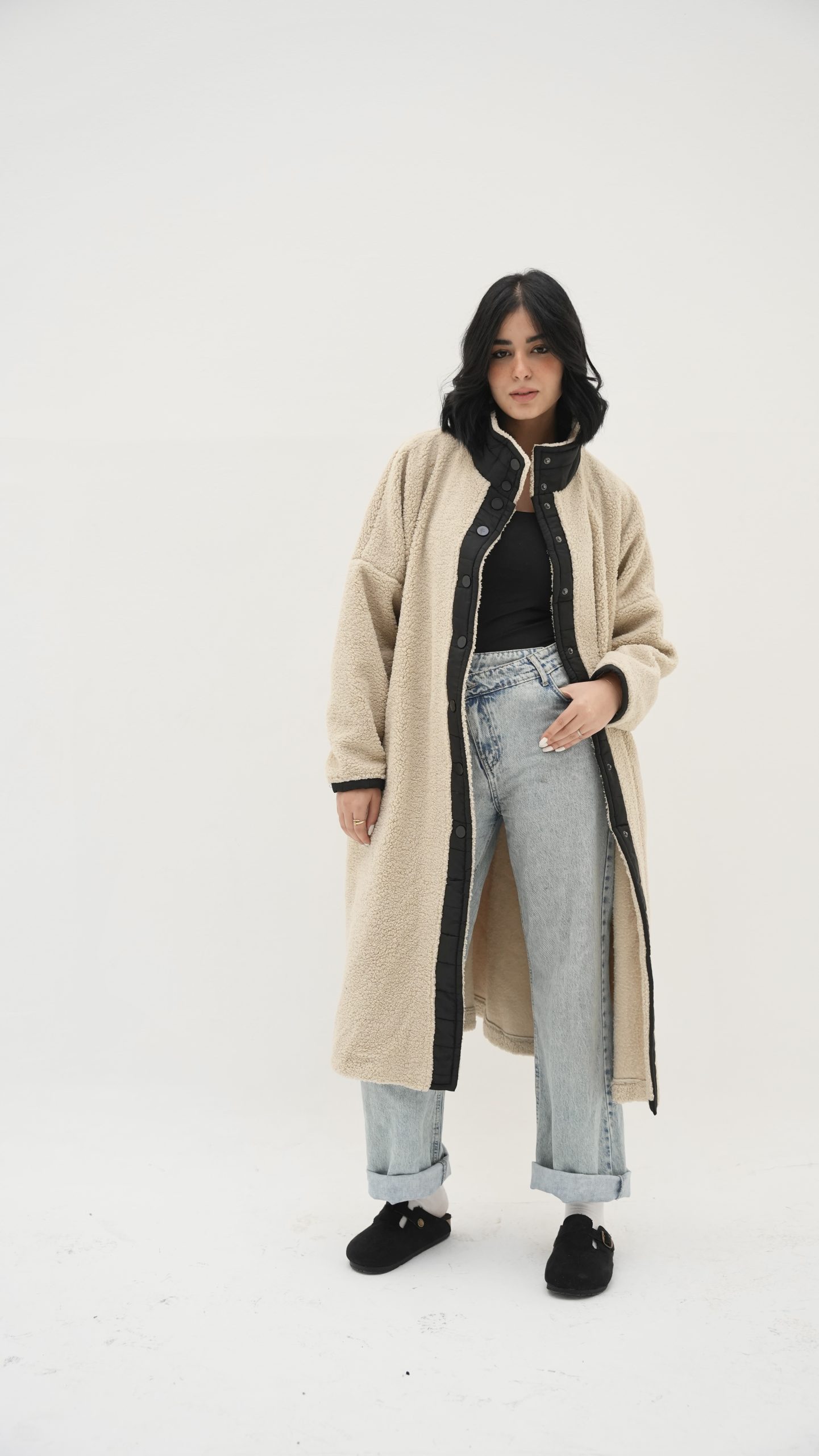 Clogs with fur on the outside and fur on the inside, made of high-quality materials in light and dark beigeEGP 750.00