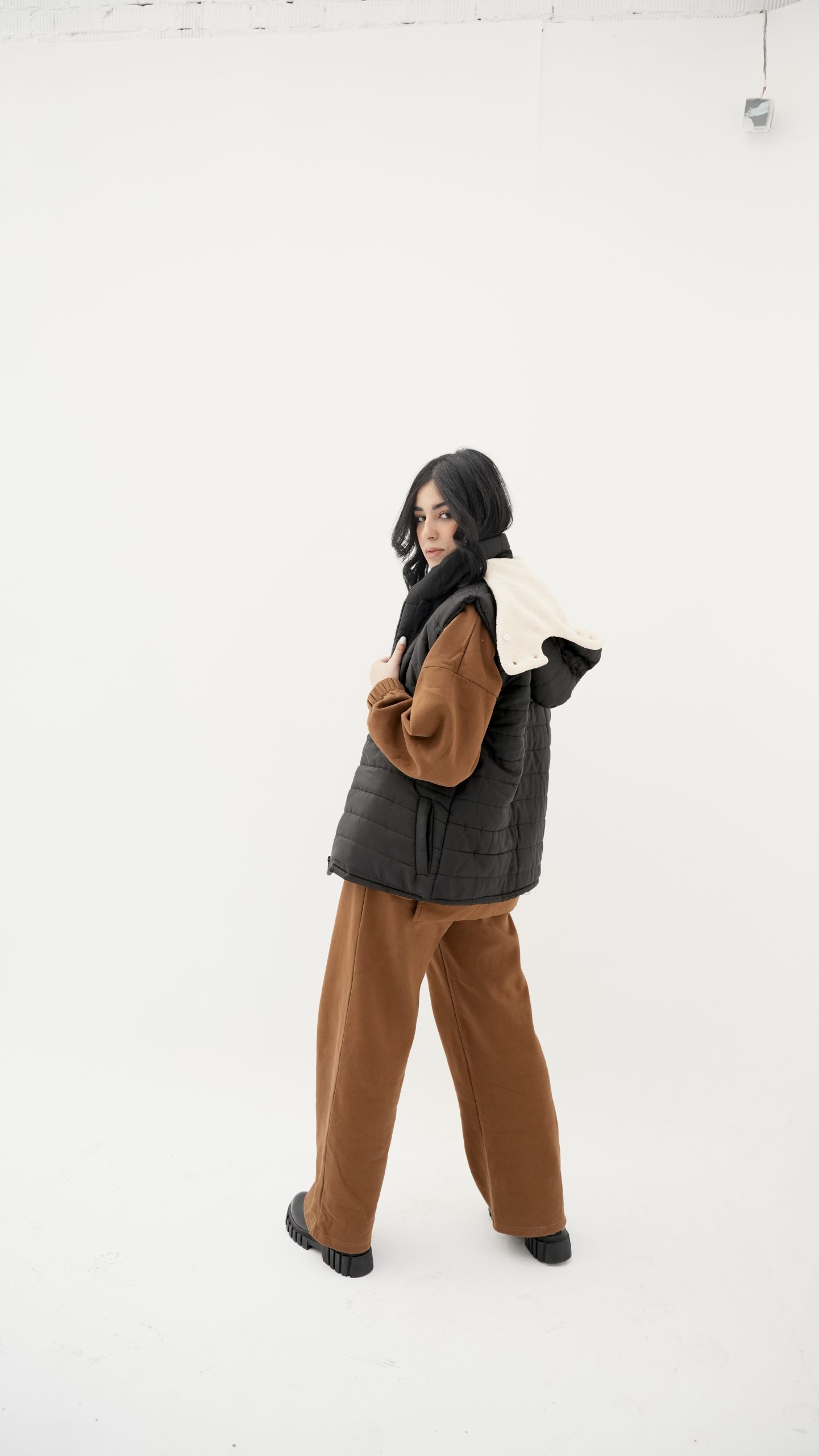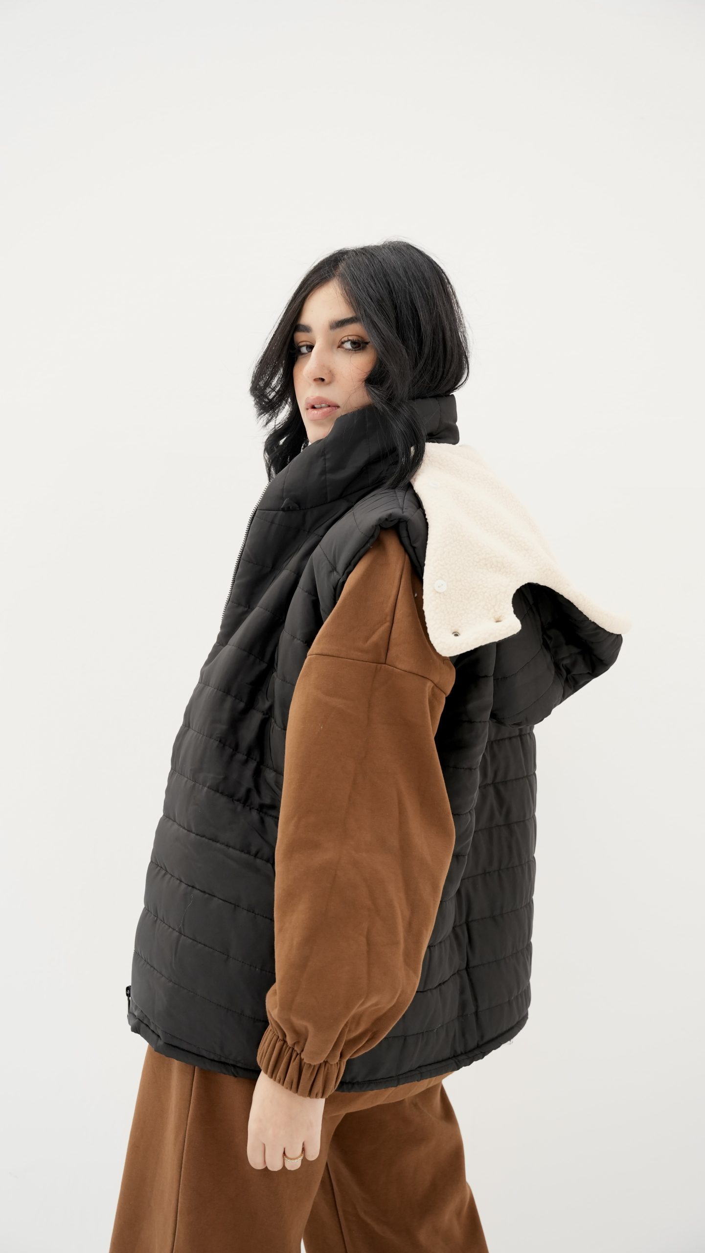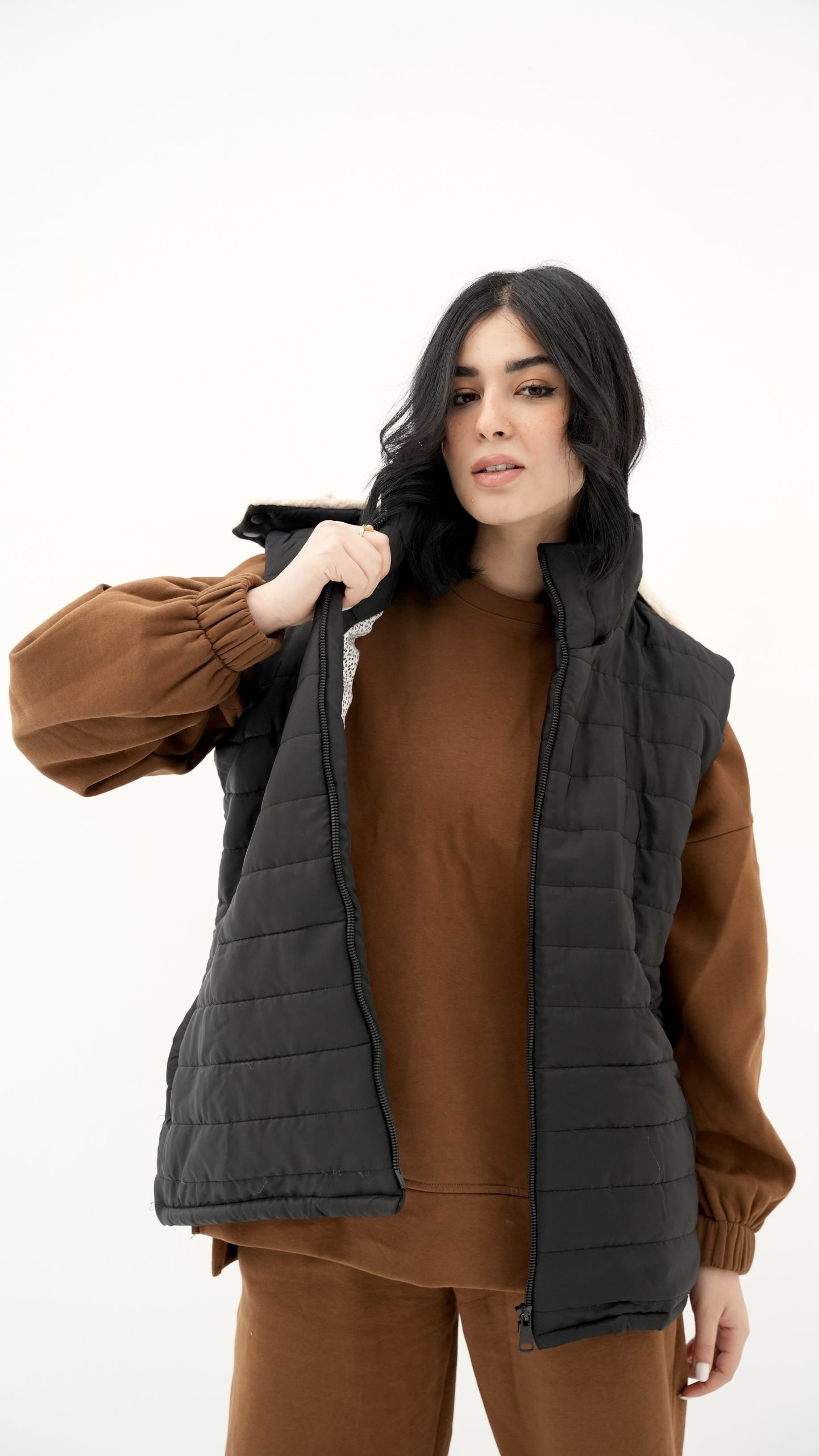 black fur jacket with soft and comfortable design. It has a front zipper closure and practical side pockets, perfect for cold weather and a stylish everyday look.EGP 950.00 -