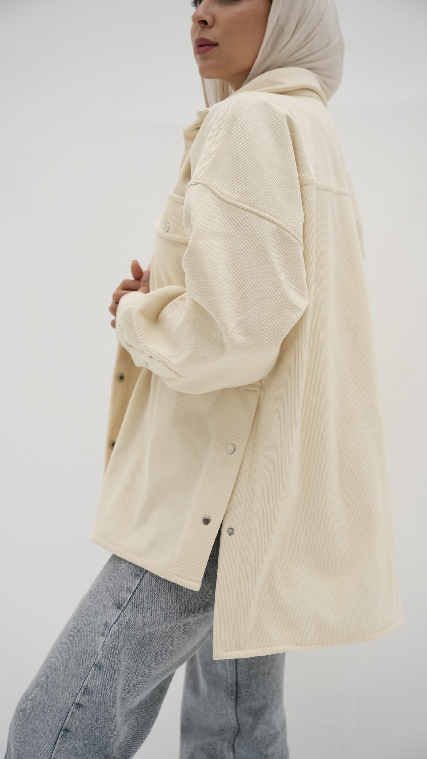 Ribbed winter chemise With platinum caps and a distinctive cut One size Length 75, width 65